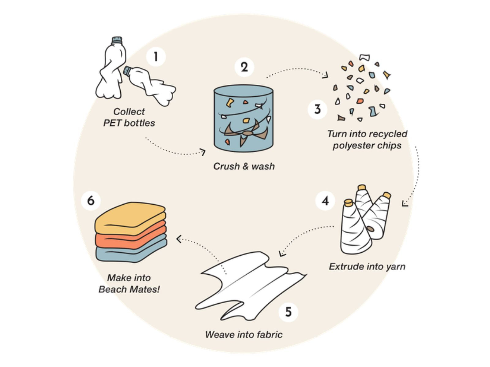 Our mat and wash bag are made from 100% post-consumer recycled plastic bottles — strong, soft, and sand-free.